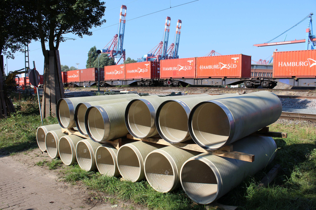 Als führender Hersteller von GFK-Rohren verfügt Amiblu über langjährige Expertise in der Herstellung und dem Einsatz von Vortriebsrohren. Sie werden seit Jahren erfolgreich bei Vortriebsprojekten von drucklosen und druckbelasteten Leitungen, kurvenreichen Trassen und Querungen sensibler Infrastrukturen, wie Bahntrassen und Wasserwegen, eingesetzt. Darüber hinaus besitzen Amiblu GFK-Vortriebsrohre die herstellerbezogene Produktqualifikation im Druckbereich von Eisenbahnverkehrslasten (HPQ DB, ehemals EBA-Zulassung) und können somit auch im Eisenbahnsektor, beispielsweise zur Unterquerung von Schienen, eingesetzt werden. Die erstmalige Verlegung von GFK-Vortriebsrohren in Bahn-Qualität per Vortrieb erfolgte 2016 im Hamburger Hafen. Im Rahmen dieses Projektes wurde ein Flowtite GFK-Vortriebsrohr zur Anbindung eines neuen Docks vorgetrieben. Das Rohr dient seitdem als Hüllrohr für eine Hochspannungsleitung.