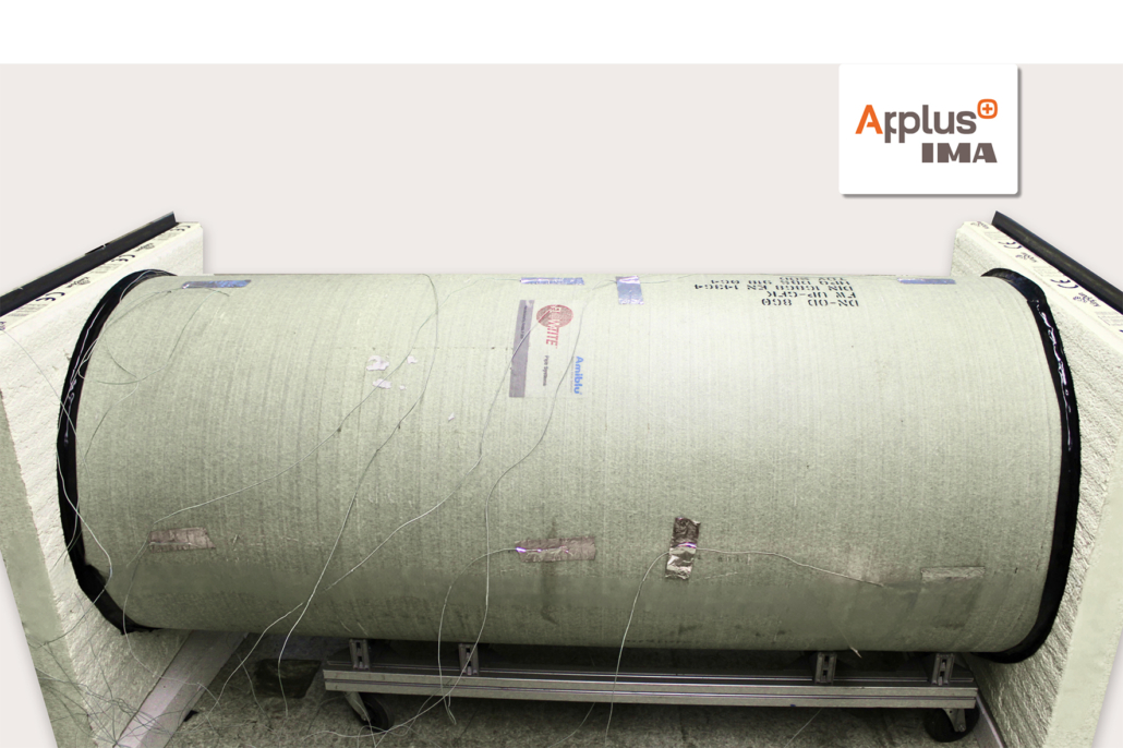 Für Standardanwendungen im Abwasserbereich sind GFK-Vortriebsrohre von Amiblu für Temperaturen bis 50°C ausgelegt, während speziell angepasste Rohre bis zu 90°C hitzebeständig und formstabil sind. Um den Aspekt der Wärmeentwicklung bei HGÜ-Leitungen genauer zu betrachten, wurden Versuche bei der Applus+ IMA (IMA Materialforschung und Anwendungstechnik GmbH, Dresden) an einem GFK-Vortriebsrohr (Typ Flowtite, Außendurchmesser OD 860, Nennsteifigkeit SN 100000, Mindestwanddicke emin = 35,5 mm) durchgeführt. Ziel der Untersuchungen nach EN ISO 8497:1996 [7] war es, die Wärmetransporteigenschaft bzw. die Wärmeleitfähigkeit des GFK-Vortriebrohres zu bestimmen. Die Wärmeleitfähigkeit ist eine Stoffeigenschaft, die Auskunft darüber gibt, wie gut die Wärme aufgrund eines Temperaturgefälles durch einen Körper transportiert wird. Für den vorliegenden Anwendungsfall ist entscheidend, wie effizient die Wärme aus dem Inneren der Schutzrohrleitung an den umgebenden Baugrund abgegeben wird.