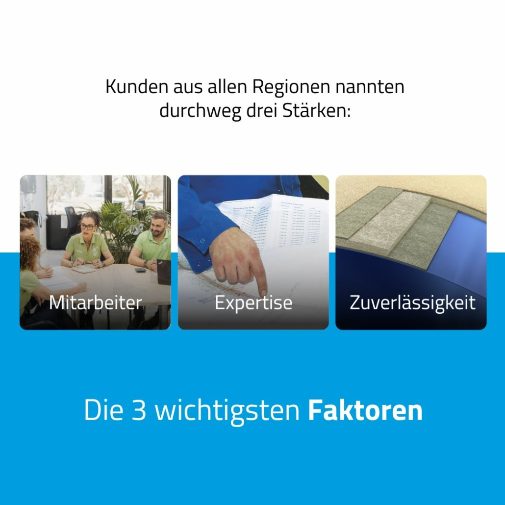 Die Ergebnisse liefern ein einheitliches und deutliches Feedback zu unserer Leistung in vier zentralen Ländern Europas: Unsere Kunden schätzen die Professionalität unserer Mitarbeiter, unser technisches Know-how und die langfristige Zuverlässigkeit unserer GFK-Lösungen.