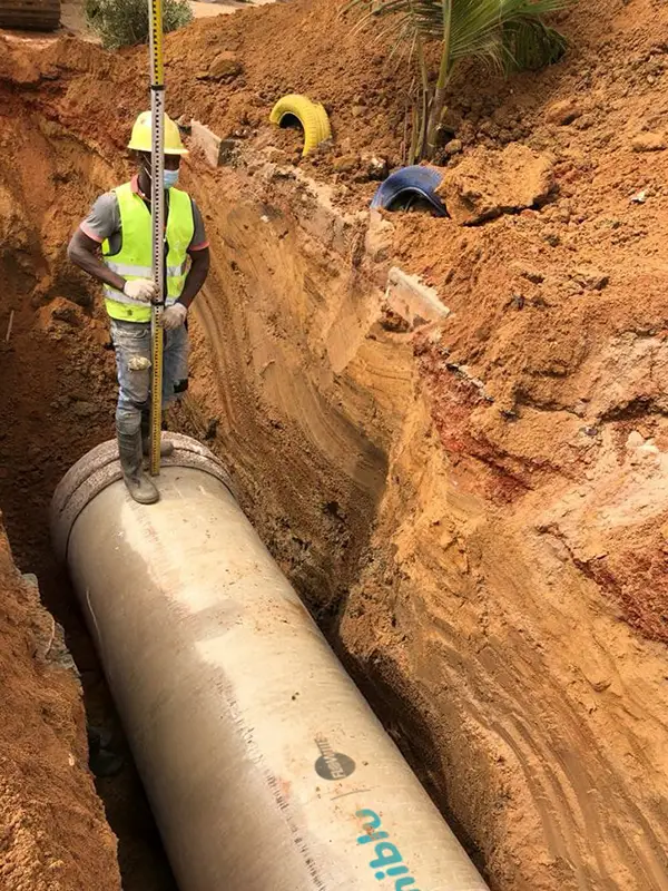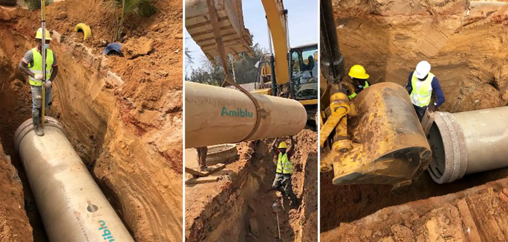 One of the project’s most significant challenges emerged in a section of Dakar where buildings were constructed directly above the old collector. Rerouting the new pipeline without disturbing these structures required a redesign of the original layout and close coordination among all parties involved. The flexibility and adaptability of Amiblu’s pipe systems were key to overcoming this obstacle without delaying the project.