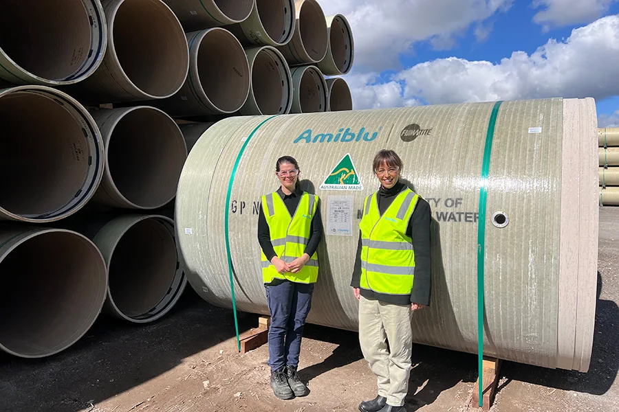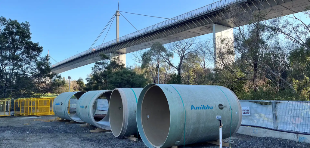 Amiblu was selected as a key supplier on this technically demanding project, providing a combination of Flowtite relining pipes DN2000 and Flowtite jacking pipes DN1700, totaling nearly 1.3 km of trenchless pipeline. With GRP’s renowned corrosion resistance, high stiffness, and lightweight structure, the material was perfectly suited to Melbourne Water’s requirements for durability and installation precision in a challenging urban environment.