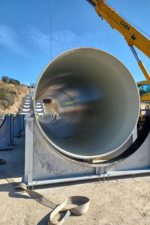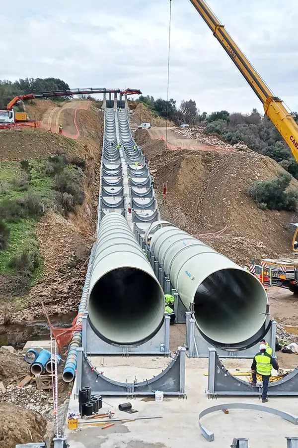 With a nominal diameter of 3,000 mm, the GRP pipelines are the largest ever constructed in Spain for irrigation purposes. Custom-fabricated elements such as elbows and tees with inserts for air valves were also integrated into the system.