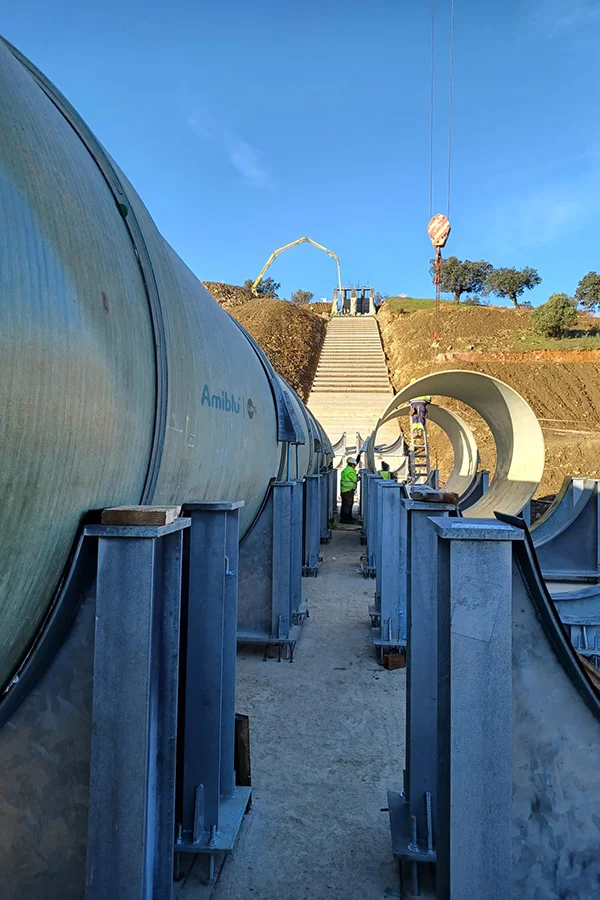 Amiblu, supplying from its Camarles plant in Tarragona, was able to manufacture and deliver the required pipes and custom parts in a record time of four months. GRP was the only material on the market that enabled the execution of such an ambitious project in such a tight timeframe, helping the Confederación Hidrográfica del Tajo and Tragsa meet their proposed objective.